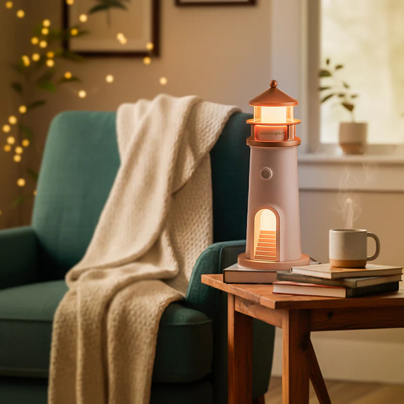 Inside, you’ll find the Lighthouse Moon Projector, USB-C charging, a decorative stand, a small sailboat, a clear guide, and a remote. Everything is designed to create a cozy, magical moonlight experience in your room.
